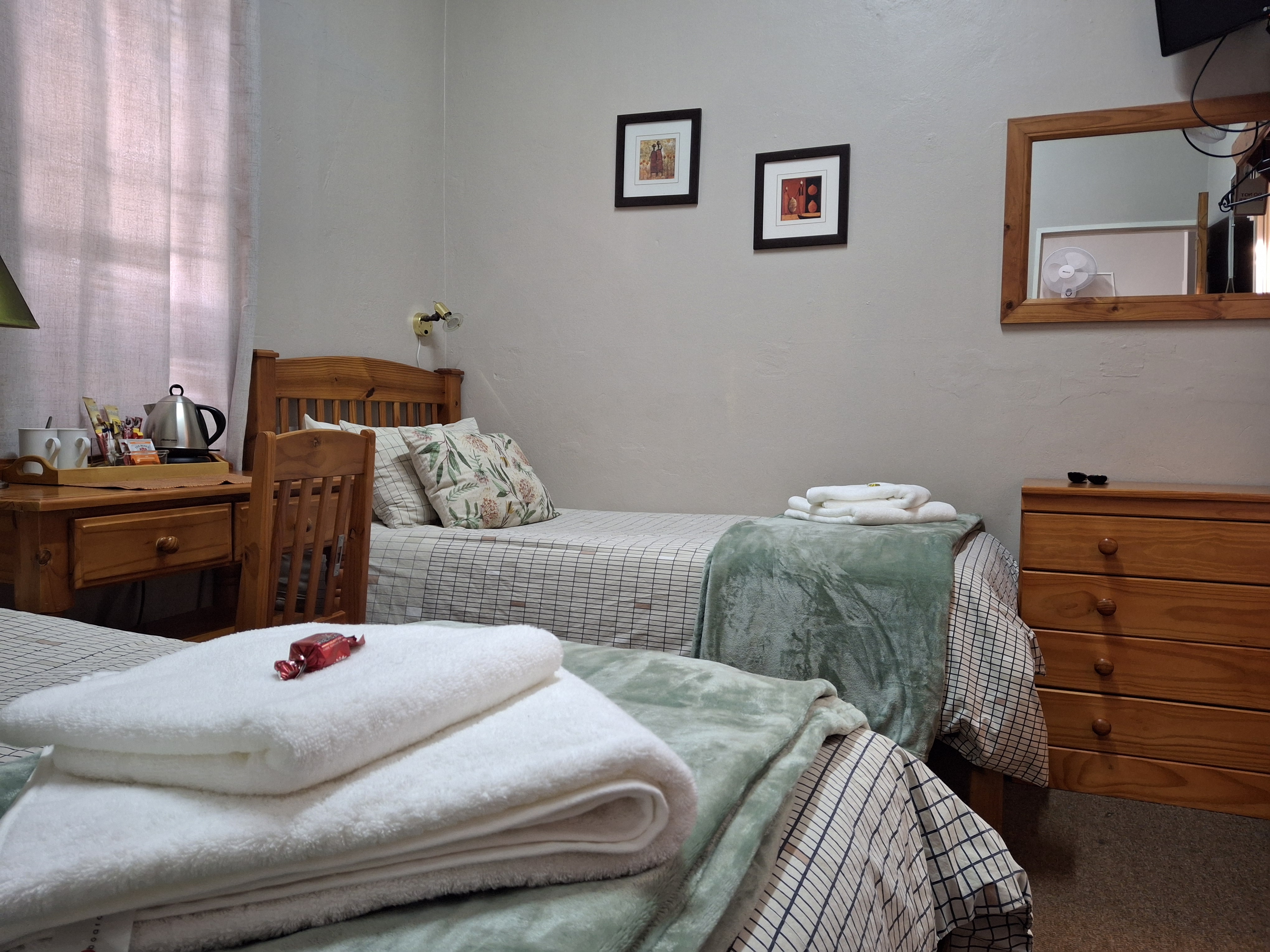 Room 3 – Twin beds and en-suite bathroom with a bath